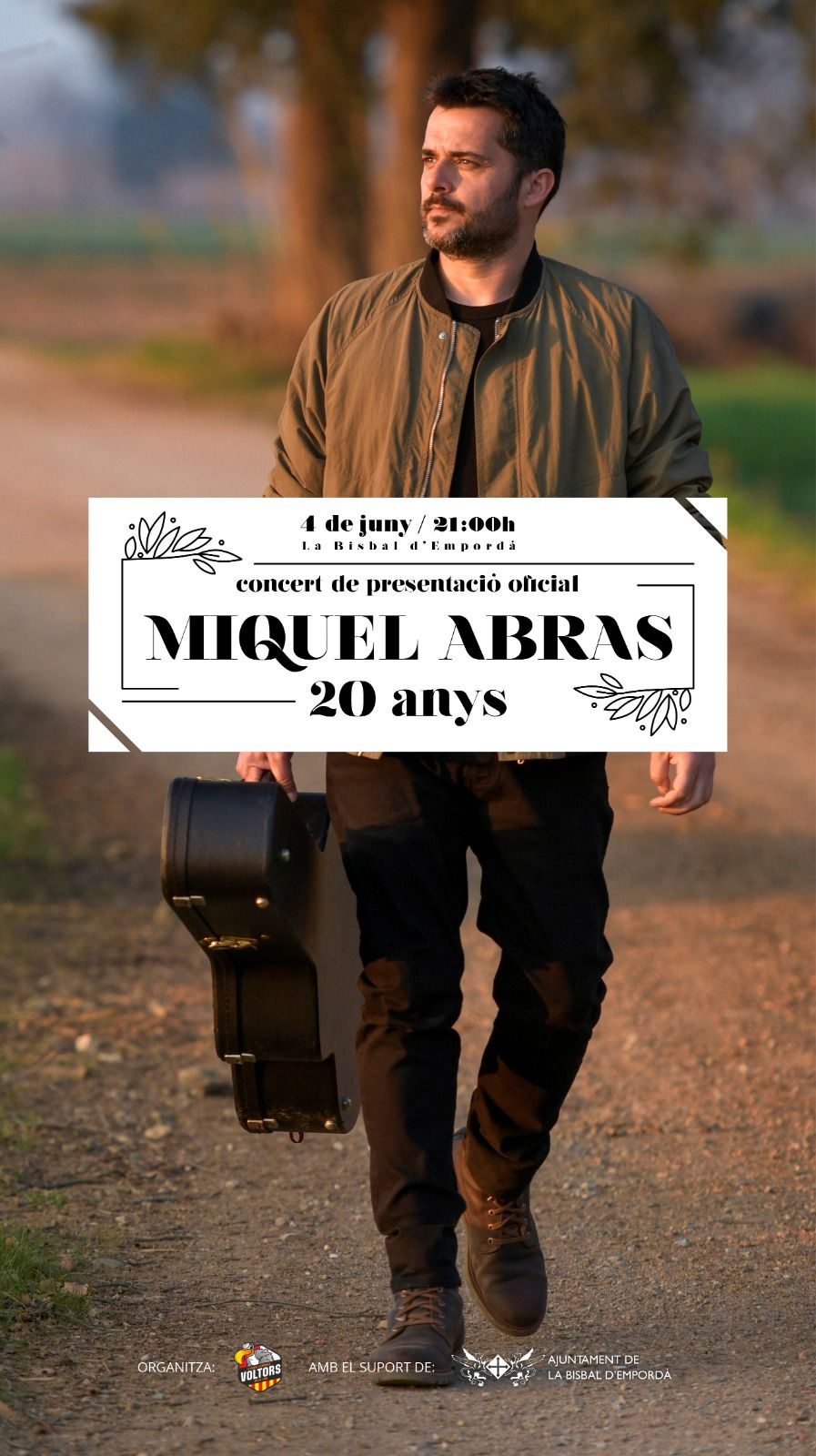 Miquel Abras, igual que els Voltors està de celebració aquest 2022, on compleix ni més ni menys que 20 anys sobre els escenaris. Un concert amb tota la seva banda i una posada en escena molt especial, pensada expressament per a l'ocasió.