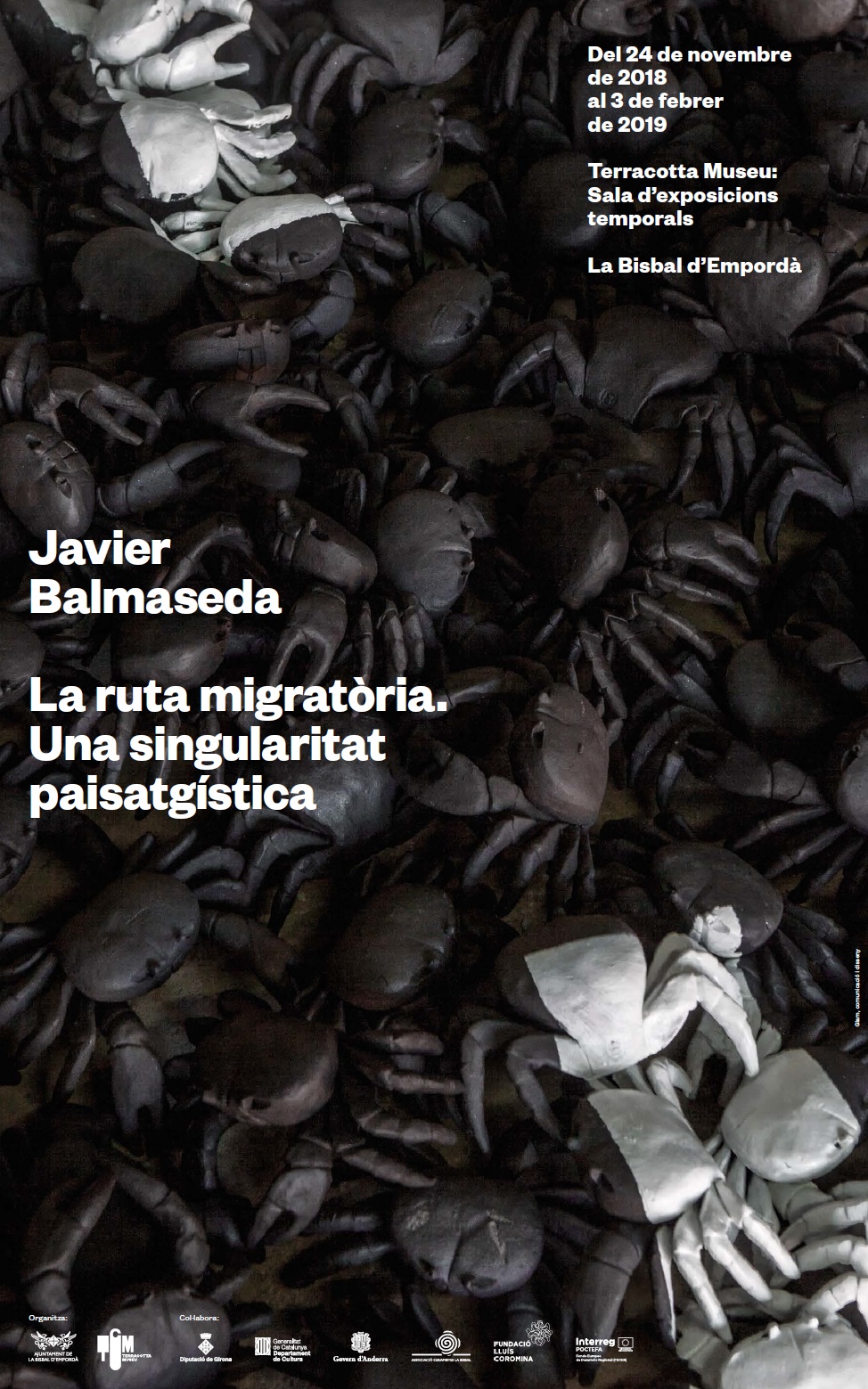 Terracotta Museu Actuació del grup de rumba i flamenc fusió Buena Onda Descripció: La instal·lació de Javier Balmaseda “Ruta migratòria: una singularitat paisatgística” reprodueix un fragment de carretera de proporcions reals –a escala 1:1–. amb la singularitat que l’asfalt està format per milers de crancs negres amuntegats uns sobre els altres. A sobre d’ells traça les línies blanques característiques de qualsevol carretera. Els crancs s’han produït amb ceràmica, l’artista els ha modelat a la Bisbal d’Empordà amb l’assessorament tècnic de professionals locals, concretament dels ceramistes de l’Estudi Ceràmic [ba_Ro] de Vulpellac. El cranc caribeny viu al boscos del Carib però cada primavera emigra cap al mar amb l’objectiu de reproduir-se. Aquesta és una imatge espectacular, ja què aquests animals emigren per milions fins a la platja: les carreteres de la costa cubana queden cobertes d’una espessa i confusa capa de bestioles negres. Aquesta és la imatge que veia de petit l’artista a la seva terra natal i que en aquesta instal·lació, de 10 metres de llarg i 4 d’amplada, utilitza com una metàfora dels actuals èxodes migratoris: persones mogudes amb el mateix objectiu que els crancs: sobreviure. Ho organitza: Terracotta Museu de Ceràmica