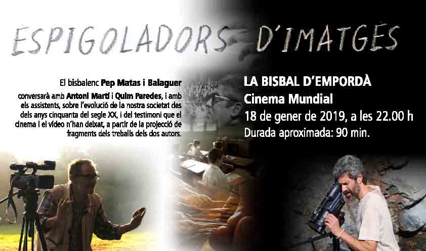 Pep Matas, historiador i advocat, conversarà amb Antoni Martí i Quim Paredes, i amb els assistents, sobre l'evolució de la nostra societat des dels anys cinquanta del segle XX, i del testimoni que el cinema i el vídeo n'han deixat, a partir de la projecció de fragments dels treballs dels dos autors.